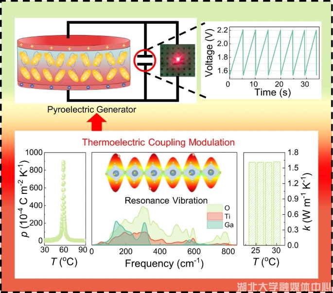 基于半导体材料的热电能量收集因其将空间温度梯度转化为电能的能力而被广泛探索。作为热电技术的补充,基于铁电材料热释电效应的热能收集器可以将低温级的废热转化为电能,几乎不需要任何外部维护即可自主工作。这种热释电能量收集器适用于为无源传感器网络、医疗健康监测和智能住宅系统提供绿色电力。
