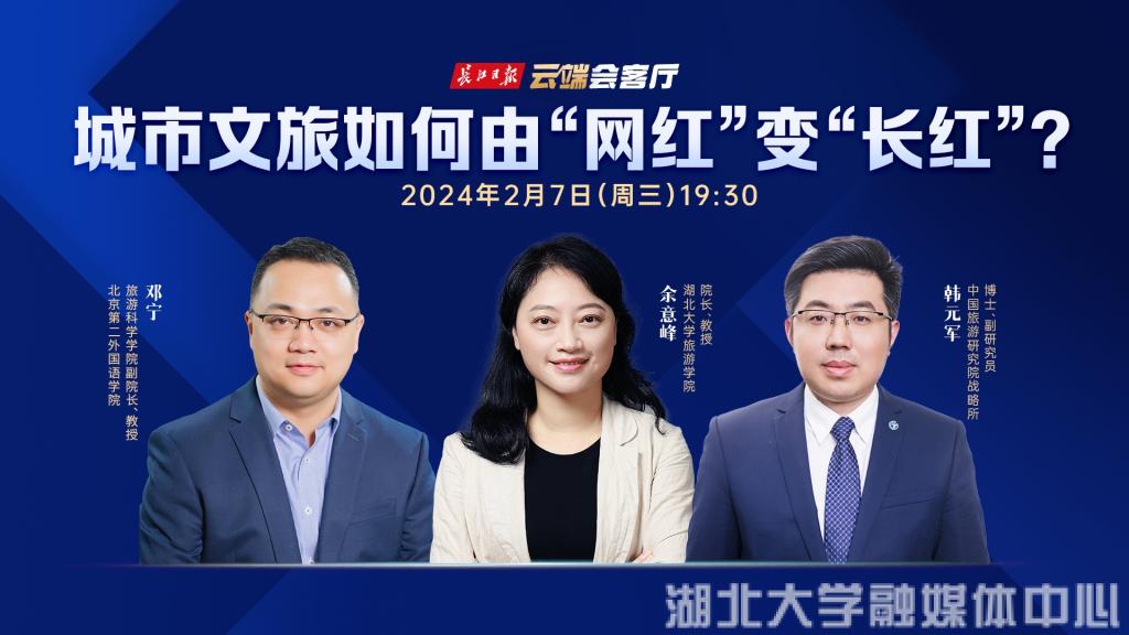近日,长江日报云端会客厅邀请北京第二外国语学院旅游科学学院副院长、教授邓宁,雷竞技ray官网旅游学院院长、教授余意峰,中国旅游研究院战略所博士、副研究员韩元军三位嘉宾做客,围绕相关问题展开讨论。