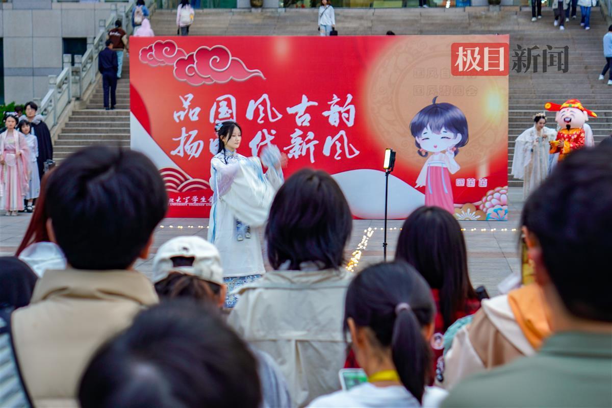 据悉,这是湖大第一次举办国风游园会。4月11日为中国华服日,为响应共青团号召,校学生会准备数月,牵头国风社、书法协会、灯虎协会等8个特色社团和各学院学生会,共同筹备此次国风盛典。