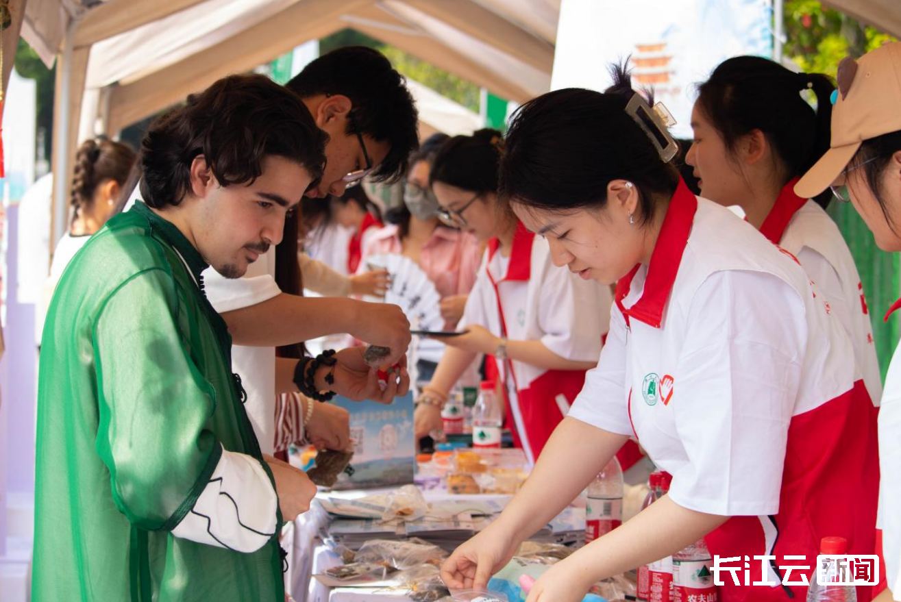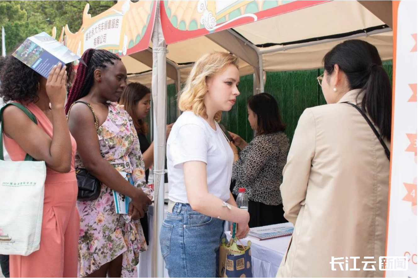 活动现场共设置12个荆楚文化展台,高校中外学子一起担任地方文化推荐官,分别介绍武汉、宜昌、襄阳等12个城市的地域文化。现场还首次举办了湖北省国际学生专场招聘会,提供了百余岗位,受到了国际学生们的欢迎。
