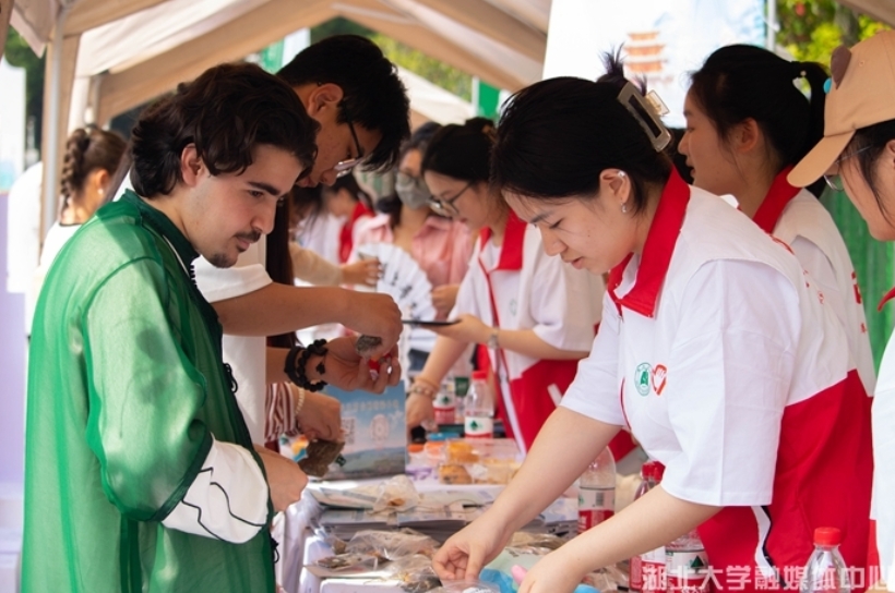 活动现场举办了湖北省文旅推介,文旅推介官和来自省内各地的国际学生们对武汉、黄石、十堰等12个城市的旅游亮点进行了深度解读,以国际学生的独特视角和感受阐释了所在城市的文化底蕴。在场中外师生纷纷打卡各展台,晒合影、做游戏、集印章、换礼品。