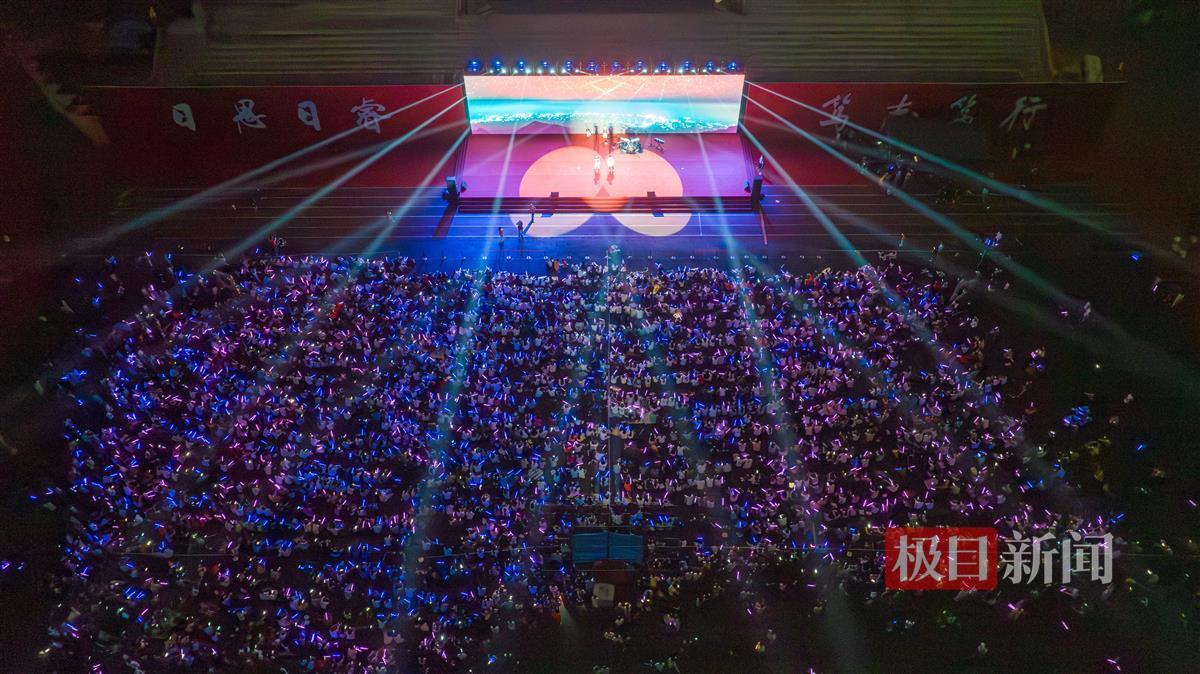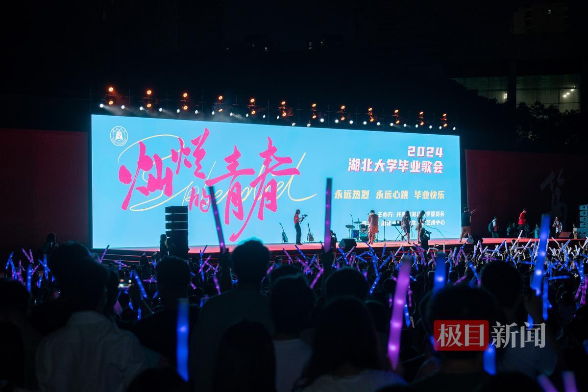金融学专业的汪灿在男友许致瑞表演时,冲上台献花,在大家的欢呼声中,她与许致瑞的本科生活画下了完美的句点,在一起的第3年,他们一同考上湖大研究生,将会在9月重返校园;Shadrach Isheanesu Ndhlovu(中文名:王力)与同伴排练了近一个月,带来串烧《龙的传人》,屏幕上,国际学生们一同录制的合唱视频结合他们在湖大的点滴,承载了众人的回忆;汉语言文学(师范类)专业的潘曜玮带着爸爸在观众席第一排全程情绪高涨,“今天是对本科生涯最后的告别了,爸爸坐了一夜绿皮火车从广东赶来。”她说。同他们一样,还有千余名学生在歌声中同母校挥手作别,即将奔赴祖国各地,书写新的篇章。