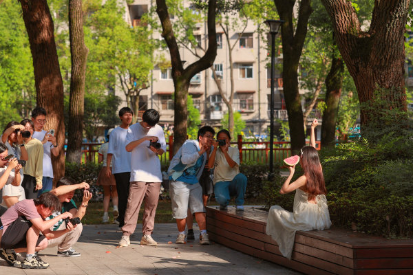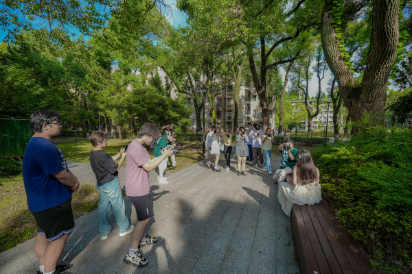 城市摄影队导师带领大学生们在校内创作。城市摄影队大学生小分队 郑川威 摄